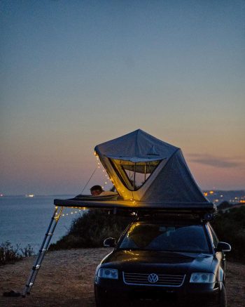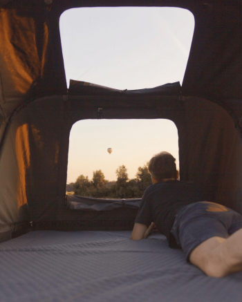 A small, compact and easy-to-open roof tent with a large lying area. We have now been using it for around 1.5 years and have around 23,000. km of road trips through the whole of Europe up to the Nordkapp and spent the night there in wind and weather - snow, storms, heat and heavy rain , took a long nap or two and enjoyed the sun. I particularly like the idea of the panoramic windows in the roof, which means you can easily observe the Northern Lights and the Milky Way from your sleeping bag. The panorama mode is perfect for mild summer nights and if there are too many critters, vou can simply "pull in" the appropriate mosquito net with a zipper. Great to see that there is still such courage and inventiveness in Germany. I wish the entire Roofspace team all the best!